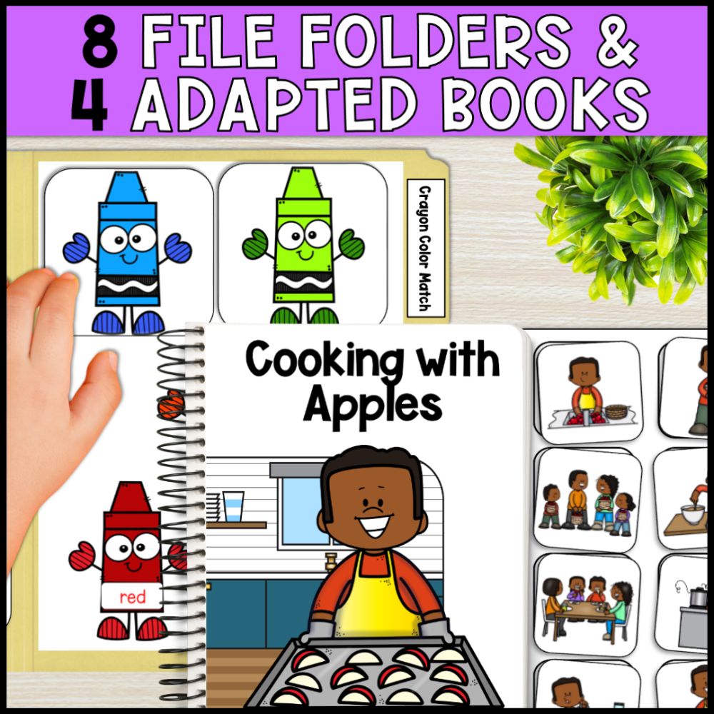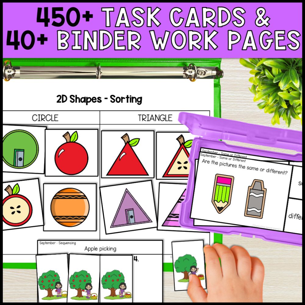 Includes over 190 worksheets, 195 task cards, 52 binder work pages, 47 file folders, and 4 adapted books for a variety of engaging activities. -